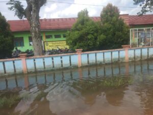 BANYUASIN- TEROPONGSUMSEL.COM Ironi dunia pendidikan kembali terjadi di Kabupaten Banyuasin. SMA Negeri 1 Muara Padang yang berlokasi di Desa Sumber Makmur tampak layaknya “pulau terisolir,” dikepung banjir luapan sungai karena tidak adanya tanggul penahan dan buruknya sistem drainase.(30/11/2025) Pantauan di lapangan menunjukkan air menggenangi jalan utama hingga area depan sekolah. Siswa dan guru harus berjibaku melintasi banjir yang kadang mencapai mata kaki bahkan lutut. Motor-motor yang terparkir pun ikut terendam, menunjukkan betapa lamanya air bertahan tanpa solusi nyata dari pihak terkait. Situasi ini bukan kejadian baru — setiap musim penghujan,…