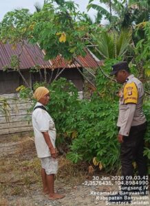BANYUASIN – TEROPONGSUMSEL.COM Bhabinkamtibmas Polsek Sungsang terus berperan aktif dalam mendukung program pemerintah melalui Program Pekarangan Pangan Bergizi (P2B) dalam rangka memperkuat dan menjaga keberlanjutan swasembada pangan nasional sebagaimana telah diumumkan oleh Presiden Republik Indonesia. Kegiatan tersebut dilaksanakan pada Jumat, 30 Januari 2026, oleh Bhabinkamtibmas Polsek Sungsang, Aipda Elan Subandi, sekitar pukul 13.30 WIB hingga selesai, bertempat di Desa Sungsang II, Kecamatan Banyuasin II, Kabupaten Banyuasin. Dalam kegiatan tersebut, Aipda Elan Subandi memberikan imbauan serta mengajak masyarakat untuk memanfaatkan lahan pekarangan rumah sebagai sumber pangan bergizi. Program P2B ini bertujuan…