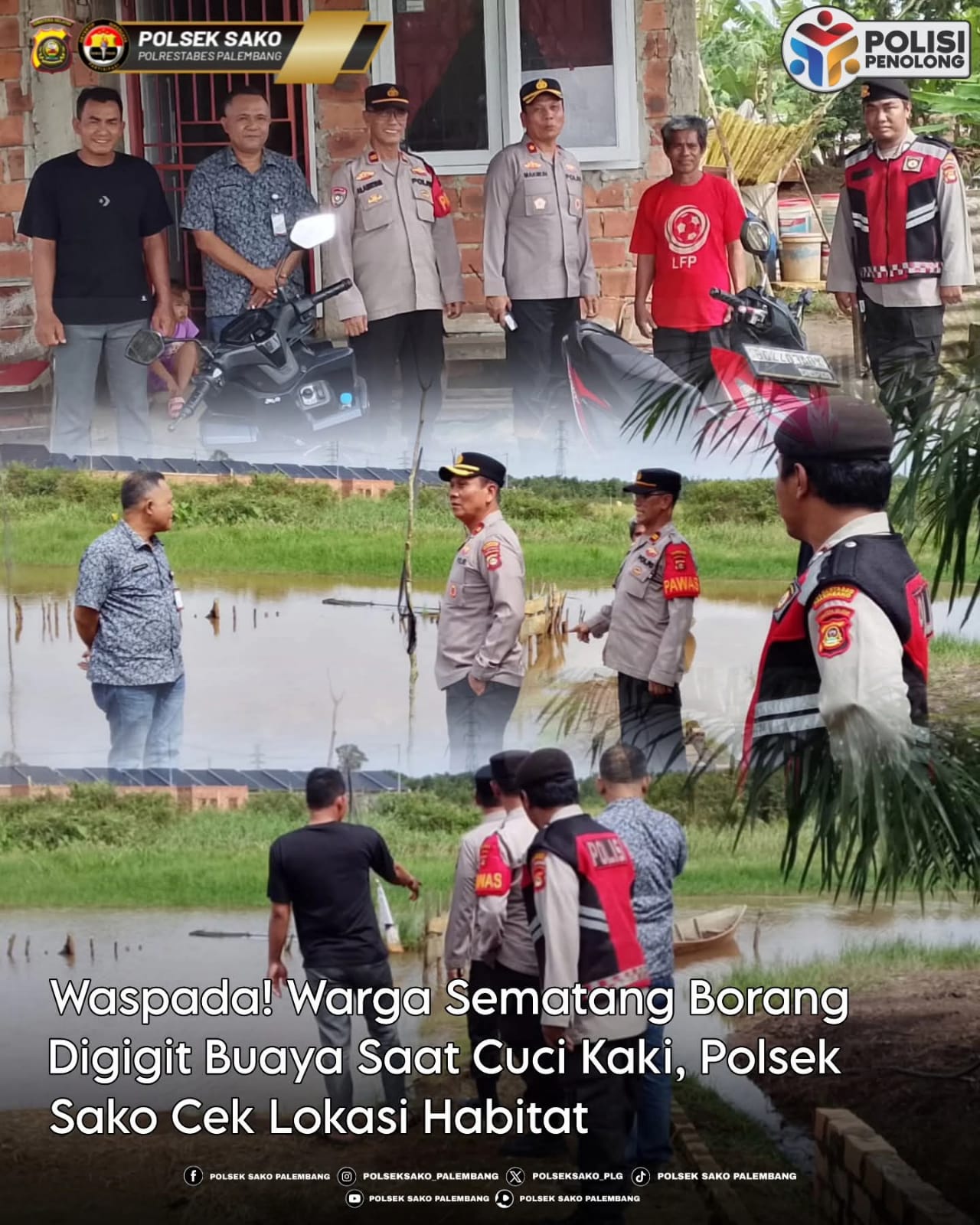 PALEMBANG – TEROPONGSUMSEL.COM Insiden serangan buaya kembali terjadi di wilayah hukum Polrestabes Palembang. Seorang warga RT 01 RW 01, Kelurahan Sukamulya, Kecamatan Sematang Borang, menjadi korban gigitan buaya saat berada di pinggiran Sungai Meranjat. Menindaklanjuti kejadian tersebut, Kapolsek Sako Kompol Makmun Nartawinata, SH, M.Si, memimpin langsung pengecekan lokasi kejadian sekitar pukul 10.00 WIB. Pengecekan dilakukan bersama Piket Pawas Iptu Alamsyah, Bhabinkamtibmas, serta aparat Kelurahan Sukamulya untuk memastikan situasi keamanan di tempat kejadian perkara (TKP). Peristiwa bermula ketika korban hendak mencuci kaki di tepi sungai. Tanpa disadari, seekor buaya yang bersembunyi…