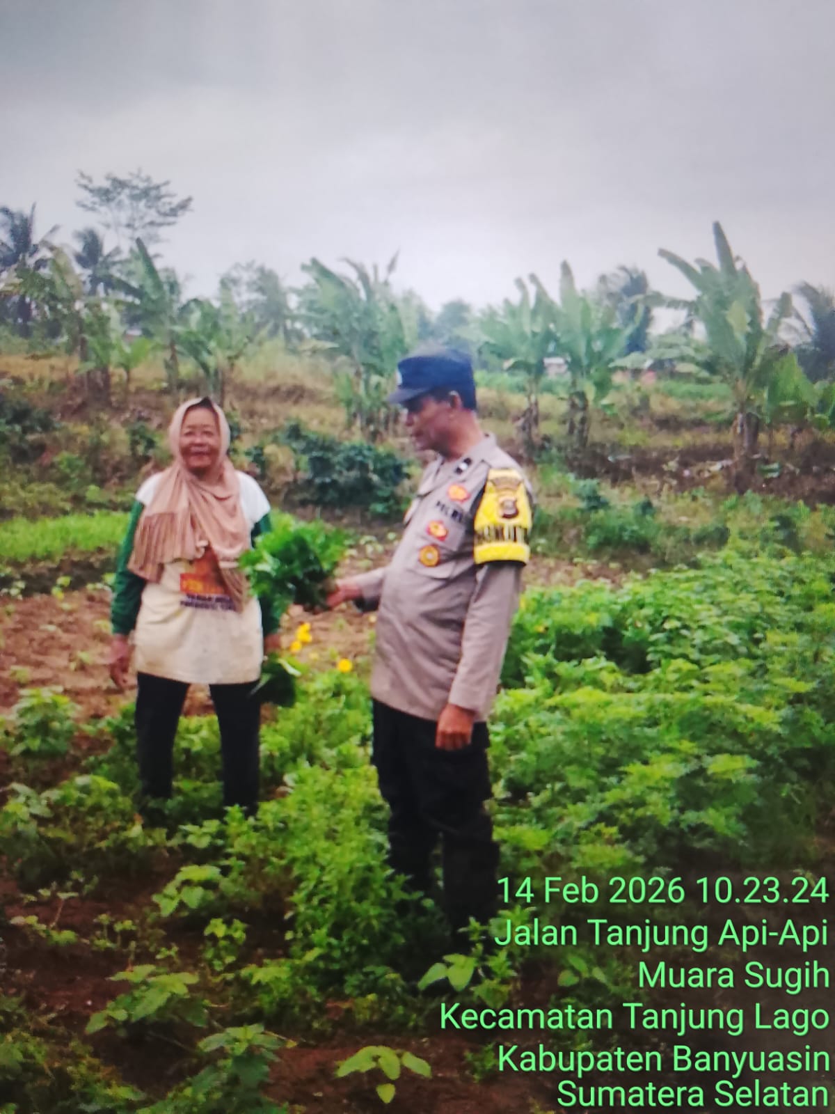 BANYUASIN – TEROPONGSUMSEL.COM Komitmen mendukung ketahanan pangan nasional terus diwujudkan melalui langkah nyata di tingkat desa. Kehadiran Bhabinkamtibmas di tengah masyarakat menjadi motor penggerak dalam menumbuhkan kesadaran warga untuk lebih produktif memanfaatkan lahan yang tersedia. Pada Sabtu, 14 Februari 2026, sekitar pukul 13.25 WIB hingga selesai, Bhabinkamtibmas Polsek Tanjung Lago, Aipda Hartoyo, melaksanakan kegiatan sambang dan pembinaan di Desa Muara Sugih, Kecamatan Tanjung Lago, Kabupaten Banyuasin. Dalam kesempatan tersebut, Aipda Hartoyo mengimbau sekaligus mengajak masyarakat untuk aktif melaksanakan Program Pekarangan Pangan Bergizi (P2B) sebagai bentuk dukungan terhadap program Presiden Republik…