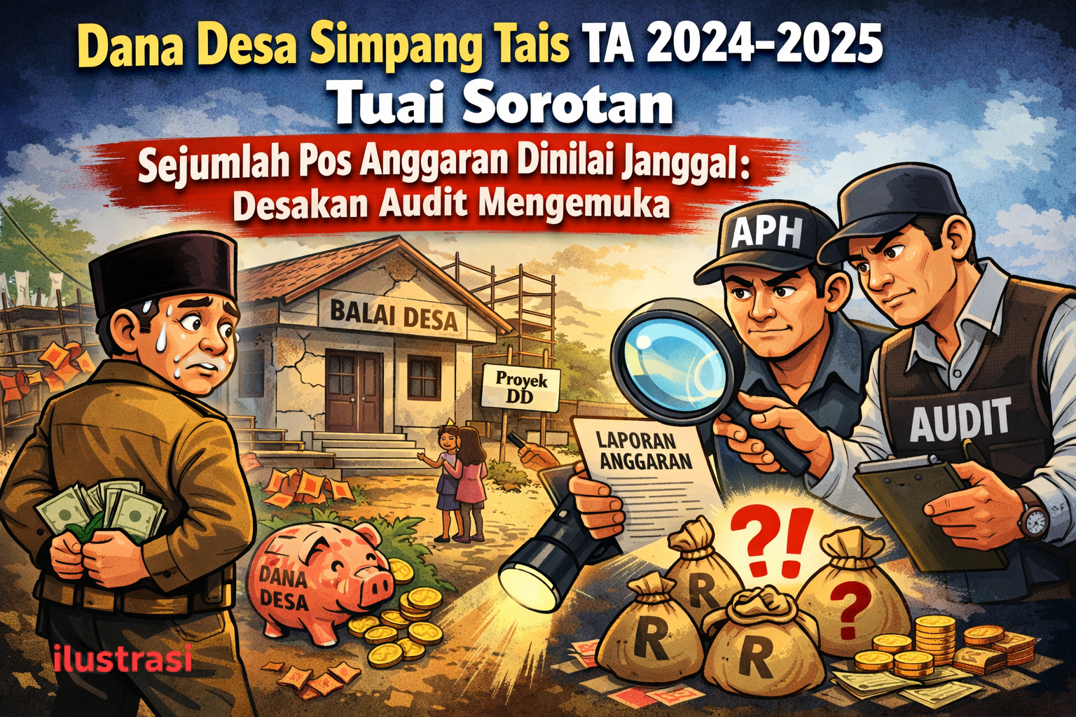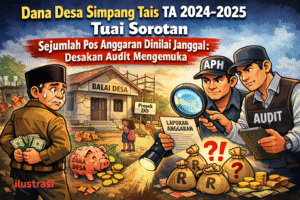 PALI — TEROPONGSUMSEL.COM Penggunaan Dana Desa (DD) Pemerintah Desa Simpang Tais, Kecamatan Talang Ubi, Kabupaten Penukal Abab Lematang Ilir (PALI), menuai sorotan publik. Hasil penelusuran data menunjukkan adanya sejumlah kejanggalan, terutama pada perbandingan penggunaan anggaran tahun 2024 dan 2025. Pada Tahun Anggaran (TA) 2024, tercatat sekitar 33 item/kegiatan yang dibiayai dari Dana Desa. Dari jumlah tersebut, anggaran operasional Pemerintah Desa bersumber dari DD Simpang Tais mencapai: Rp 6.000.000 Rp 4.278.260 Rp 6.400.000 Dengan total Rp 16.678.260. Namun yang menjadi perhatian serius, pada TA 2025, meski jumlah kegiatan menurun…
