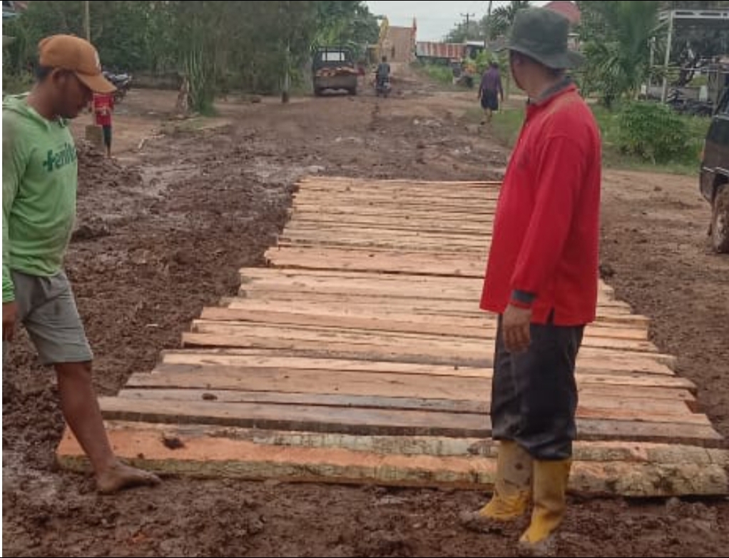 BANYUASIN – TEROPONGSUMSEL.COM Curah hujan tinggi yang mengguyur wilayah Kecamatan Muara Sugihan dalam beberapa hari terakhir menyebabkan akses jalan utama di Desa Indrapura, Kabupaten Banyuasin, mengalami kerusakan parah hingga nyaris terputus dan sulit dilalui kendaraan. Menyikapi kondisi tersebut, Kepala Desa Indrapura, Widodo, menunjukkan respons cepat dengan turun langsung ke lokasi bersama masyarakat. Mereka bahu-membahu melakukan penanganan darurat secara swadaya dengan memasang papan kayu sebagai jalur sementara agar aktivitas warga tetap bisa berjalan.(27/12/2025) Pantauan di lapangan menunjukkan Kepala Desa Widodo ikut bergotong royong di tengah kondisi jalan yang berlumpur dan licin.…