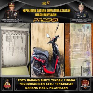 Berdasarkan keterangan tersebut, tim yang dipimpin langsung oleh IPDA M. Ropiyan Anggono, S.H., M.H. bergerak cepat melakukan pengembangan dan berhasil mengamankan AF beserta barang bukti satu unit sepeda motor Honda Genio warna merah hitam, BPKB, dan STNK asli yang sesuai dengan laporan korban.