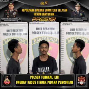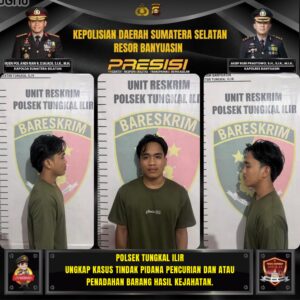 BANYUASIN – TEROPONGSUMSEL.COM Jajaran Polsek Tungkal Ilir Polres Banyuasin di bawah pimpinan Kapolsek IPTU M. Fachrie Persada Putra, S.Tr.K., M.Si., melalui Kanit Reskrim IPDA M. Ropiyan Anggono, S.H., M.H., berhasil mengungkap kasus tindak pidana pencurian dan penadahan barang hasil kejahatan sebagaimana dimaksud dalam Pasal 362 Jo 480 KUHPidana.
