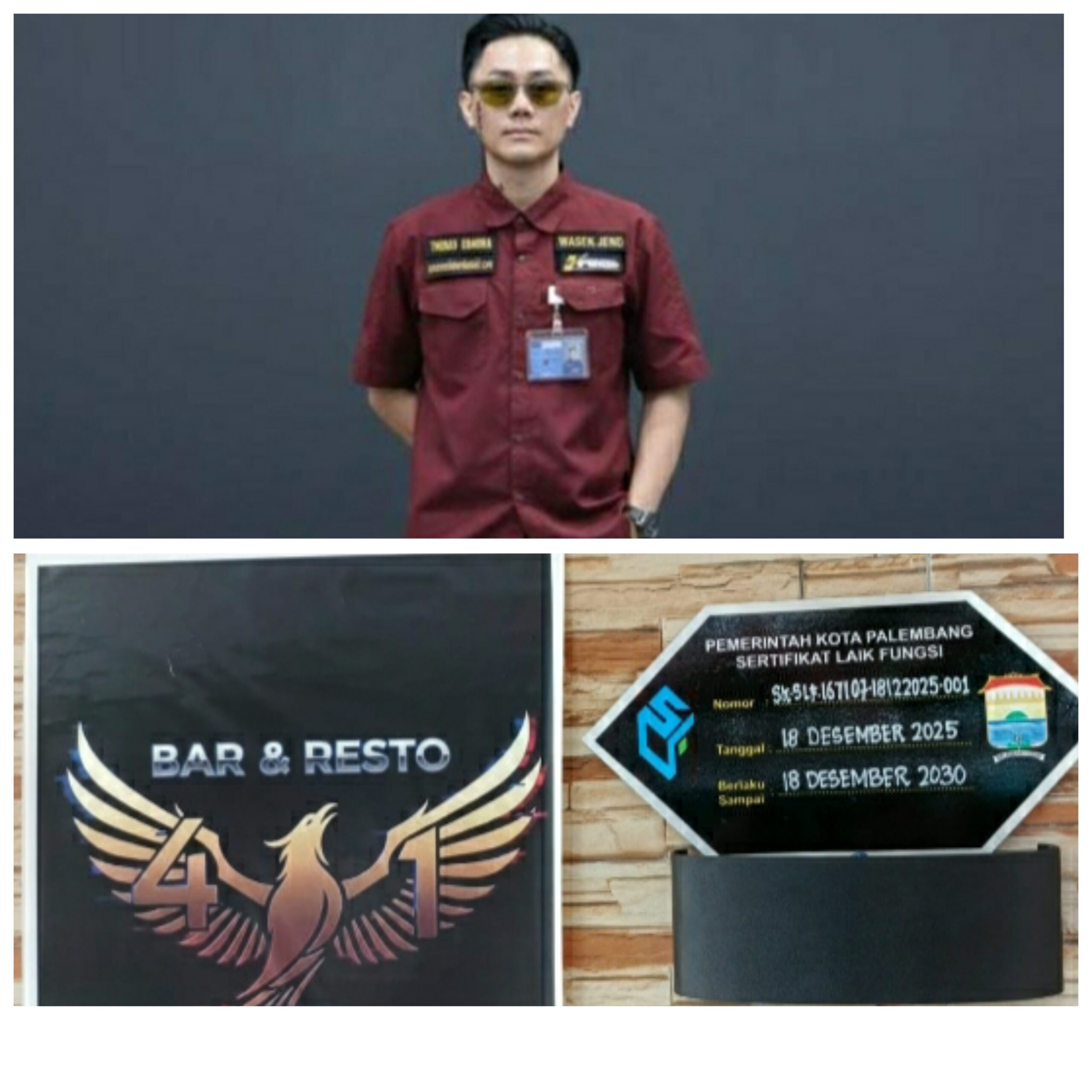PALEMBANG – TEROPONGSUMSEL.COM Mencuatnya berbagai isu di media siber dan media sosial terkait legalitas operasional Hotel, Bar, dan Diskotik Darma Agung (DA) Club 41 akhirnya mendapat tanggapan resmi dari pihak manajemen. Owner DA Club 41, Thomas Chandra, BSc, menegaskan bahwa tempat usaha yang dikelolanya telah mengantongi izin resmi dari Pemerintah Kota (Pemkot) Palembang dan beroperasi secara sah. Kamis (25/12/2025). Thomas menjelaskan, DA Club 41 telah memperoleh kepastian hukum berupa izin operasional yang masih berlaku hingga Desember 2030. Bahkan, Pemkot Palembang secara resmi telah melakukan penempelan berkas perizinan di lokasi usaha,…
