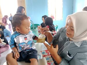 “Selain itu, kegiatan ini juga diisi dengan penyuluhan tentang gizi, pola asuh anak yang benar, dan stimulasi perkembangan balita agar tumbuh kembangnya lebih maksimal.