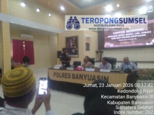 BANYUASIN – TEROPONGSUMSEL.COM Kapolres Banyuasin, AKBP. Risnan aldino. S. IK, M. SI. Didampingi Kasat Intel Polres Banyuasin, Kasatreskrim Polres Banyuasin, Kadiv Humas Polres Banyuasin, Mengundang Seluruh wartawan yang ada di Kabupaten Banyuasin, selain itu. Hadir juga dalam undangan para Ketua serta pengurus Organisasi ormas, Organisasi Kepemudaan dan Mahasiswa.