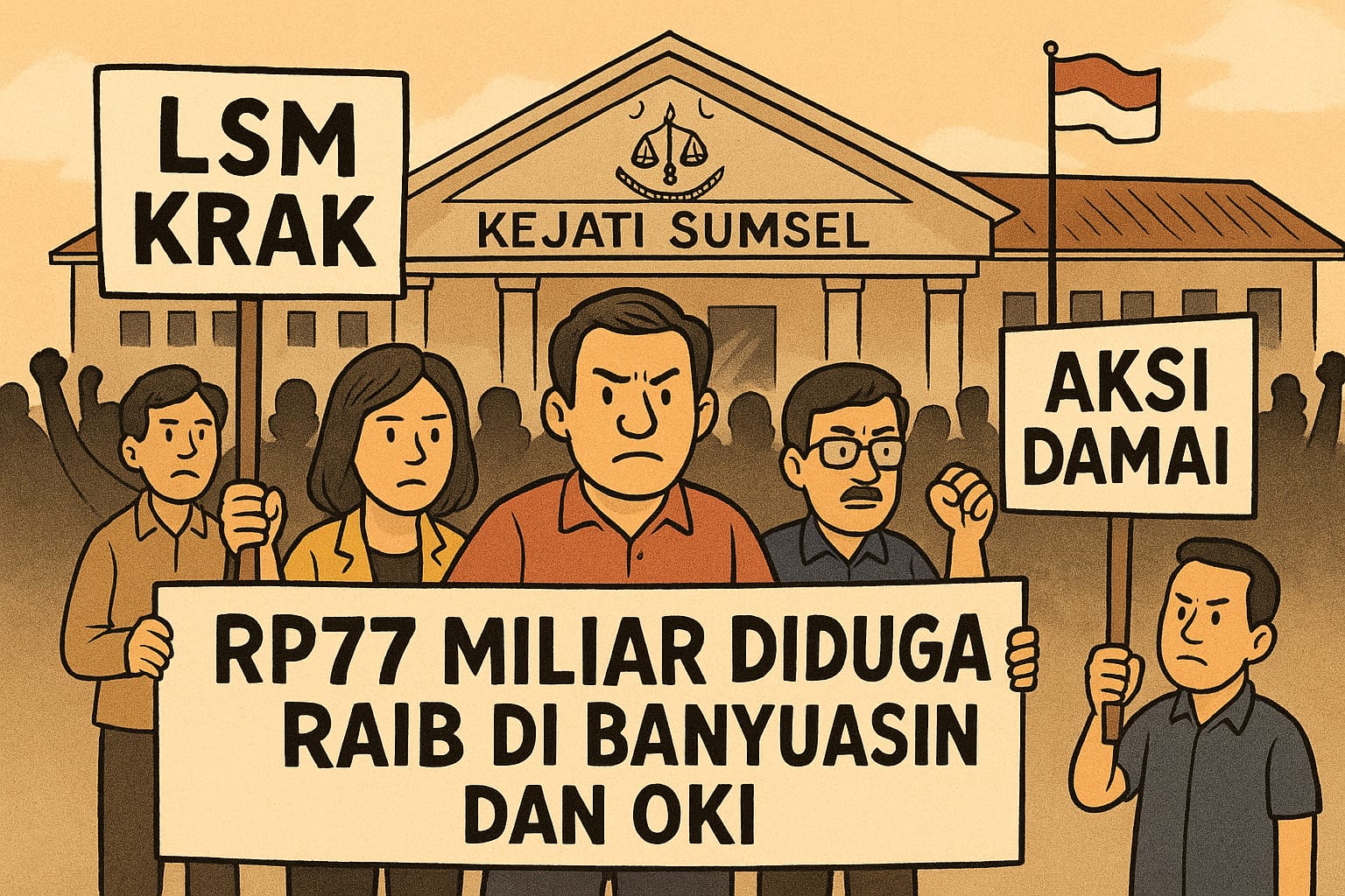 PALEMBANG – TEROPONGSUMSEL.COM Lembaga Swadaya Masyarakat Komite Rakyat Anti Korupsi (LSM KRAK) bersama elemen masyarakat berencana menggelar aksi unjuk rasa damai di depan Kantor Kejaksaan Tinggi Sumatera Selatan (Kejati Sumsel) pada Jumat, 12 September 2025. Dalam aksi tersebut, mereka juga akan menyerahkan laporan resmi terkait dugaan korupsi di Kabupaten Ogan Komering Ilir (OKI) dan Kabupaten Banyuasin, dengan total kerugian negara ditaksir mencapai lebih dari Rp 77 miliar.