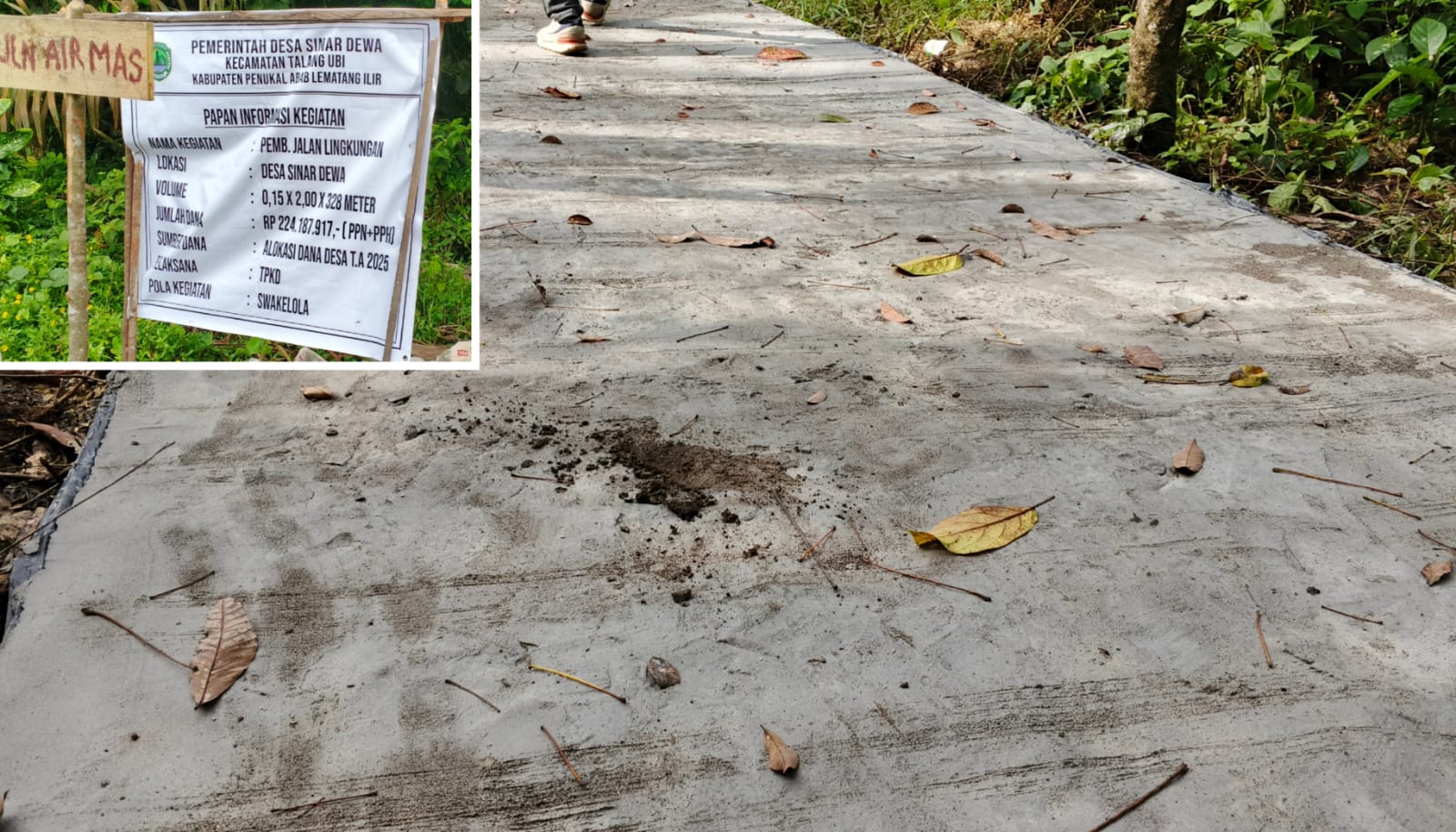 Proyek Cor Beton ADD TA 2025 Desa Sinar Dewa Disorot, Anggaran Rp224 Juta Diduga Tak Sesuai RAB