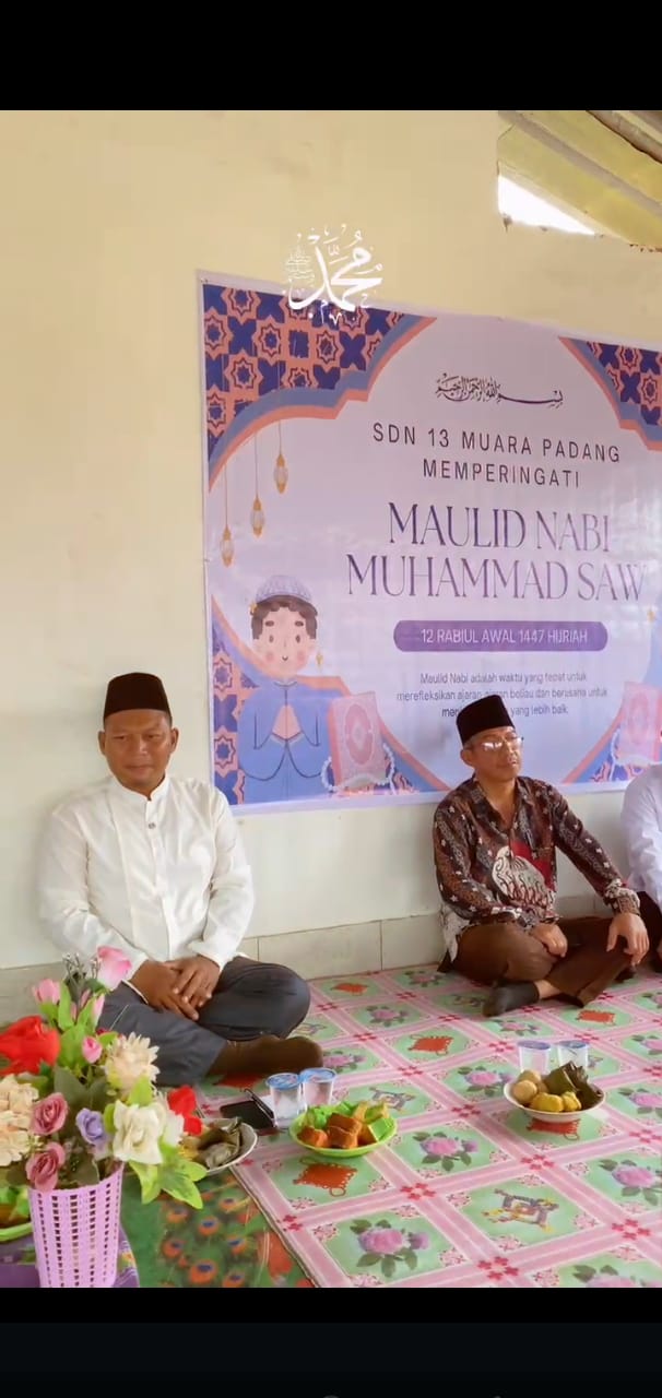 BANYUASIN – TEROPONGSUMSEL.COM SDN 13 muara padang pada hari Sabtu tanggal 6 September 2025, mengadakan peringatan maulid nabi Muhammad Saw, kepala sekolah ibu Romlah mengundang penceramah bapak dwi Suranto S.Pd.M.Pd,kegiatan ini bertujuan untuk meningkatkan kesadaran siswa akan pentingnya meneladani akhlak mulia nabi Muhammad Saw.